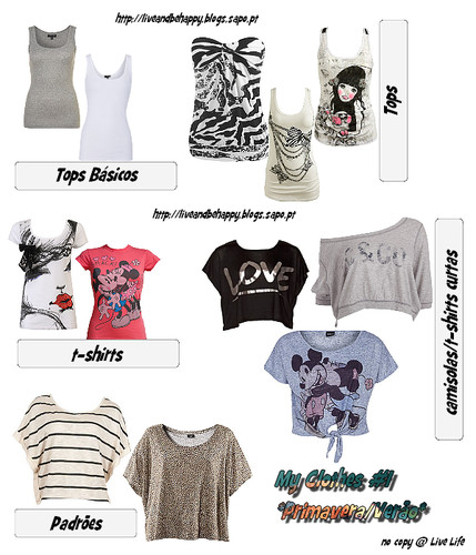 ♦Camisolas/ T-shirts curtas - com muita pena minha, só tenho camisolas curtas, que para os dias de primavera são úteis (visto que na primavera ainda não temos temperaturas tão elevadas). contudo, tenciono comprar algumas t-shirts curtas, estão in nesta estação e confesso que adoro.