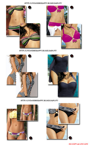 Opta por modelos geométricos ou riscas diagonais, tendo preferência pelos triquinis que irão redefinir a tua cintura; contudo podes igualmente usar cuecas com lacinhos ou fitas laterais;