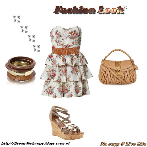 Este é um look muito simples, é em tons de castanho em que predomina os acessórios que vão fazer toda a diferença. É constituído por um vestido com um padrão florido que continua em grande, este verão, tal como as sandálias em cunha e a carteira, sendo que optei por adicionar umas pulseiras e um cinto para dar um ar mais completo ao look.